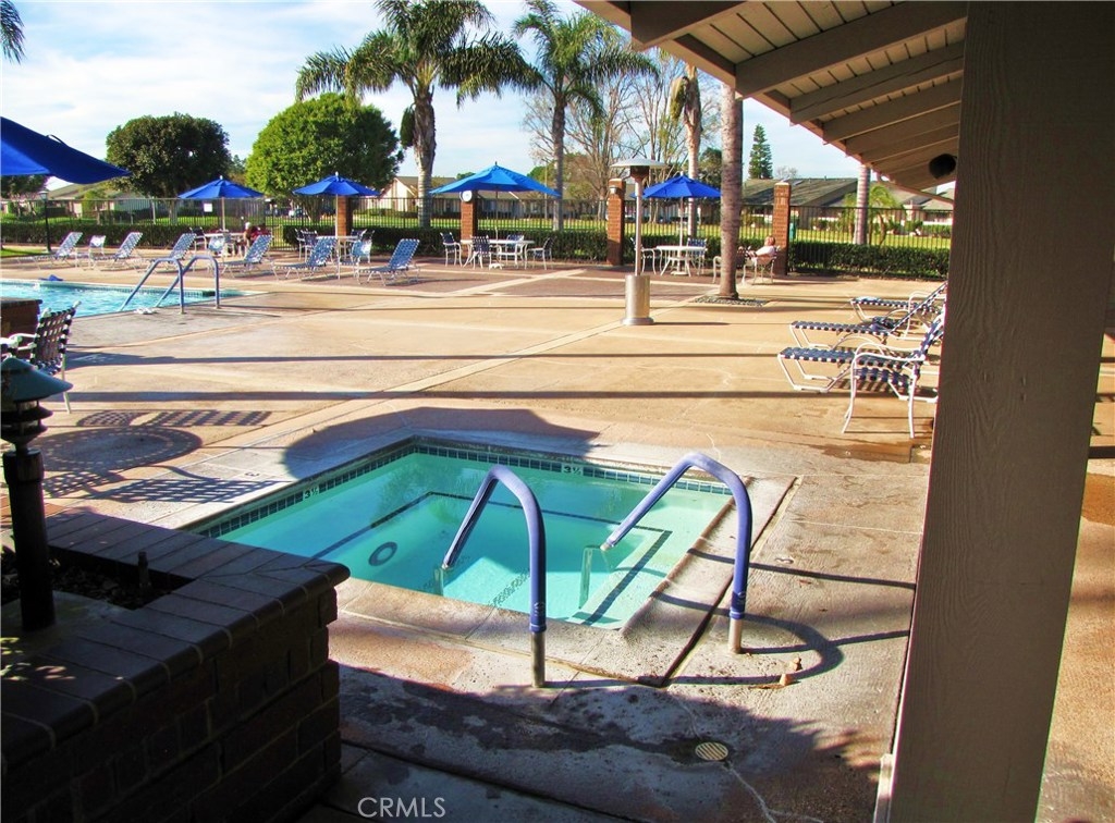 Beautiful 2 bedroom 2 bath condo with 1 car garage. Corian counters in kitchen and baths. Quiet interior location. Large private patio. One car garage and guest parking in front of the property. Wonderful resort style community with many great amenities including 2 heated swimming pools, spa, tennis courts, putting green, shuffle board, gym, weight room, club house, ceramic room, wood shop, library, billiard room any lots of other activities like fitness classes, dances, bingo and much more. There is an on site management office for your convenience. The gate is guarded 24 hours for your security.