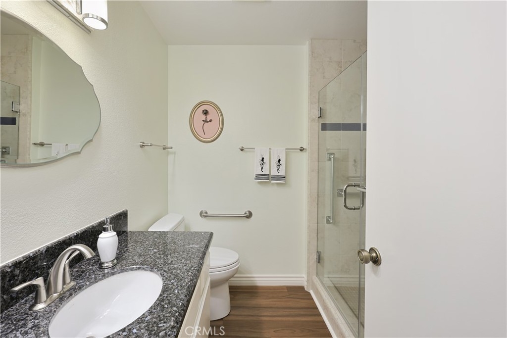 END UNIT… SINGLE STORY… 3 Bedroom, 2 bath home in the Huntington Landmark community! GREAT LOCATION! Interior condo located CLOSE to GARAGE (1 space) and nearby guest parking. Fresh paint and new vinyl plank flooring. SPACIOUS living room with vaulted ceilings, skylight and French doors to the patio. PRIMARY SUITE with a large walk-in closet, skylight, marble countertop, walk-in shower and plenty of storage. UPDATED kitchen with granite counter tops and lots of natural light. Dual pane windows. CENTRAL AC. Laundry hook ups enclosed within the patio closet. Laguna model unit. A fantastic 55+ Community with 24 Hour-guard gated security located CLOSE TO THE BEACH with tons of amenities to enjoy: 2 pools, 2 spas, tennis, pickleball, fitness center, billiards, wood shop, ceramics room, putting green, craft and game rooms, activities, concerts and much more!