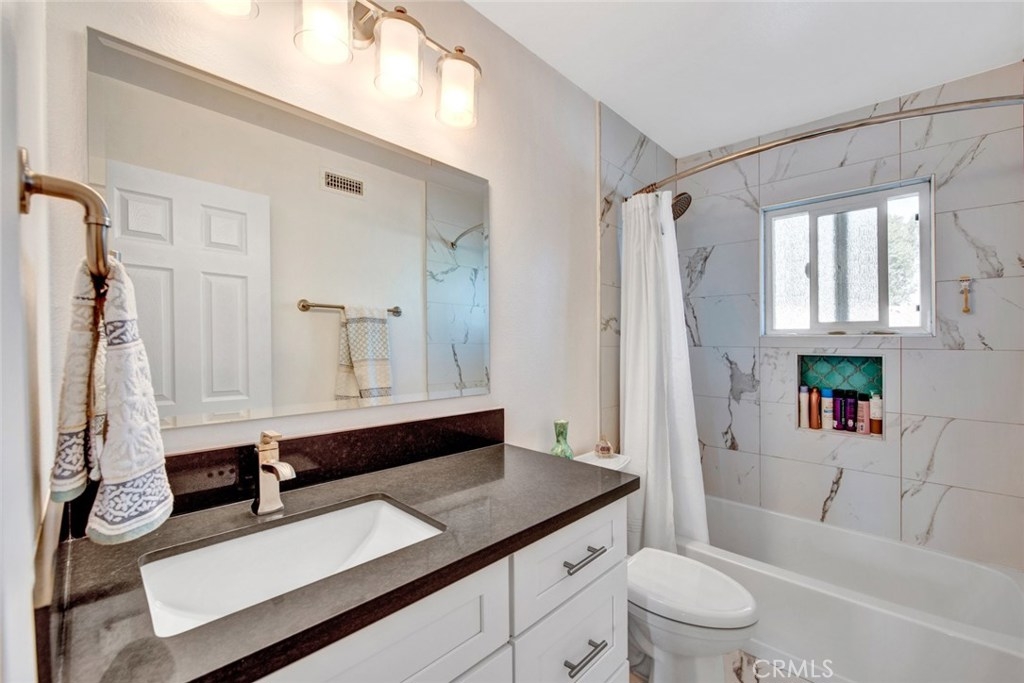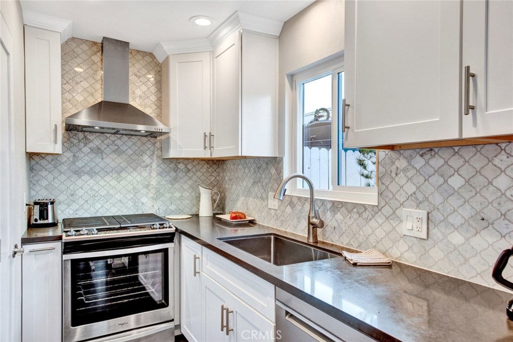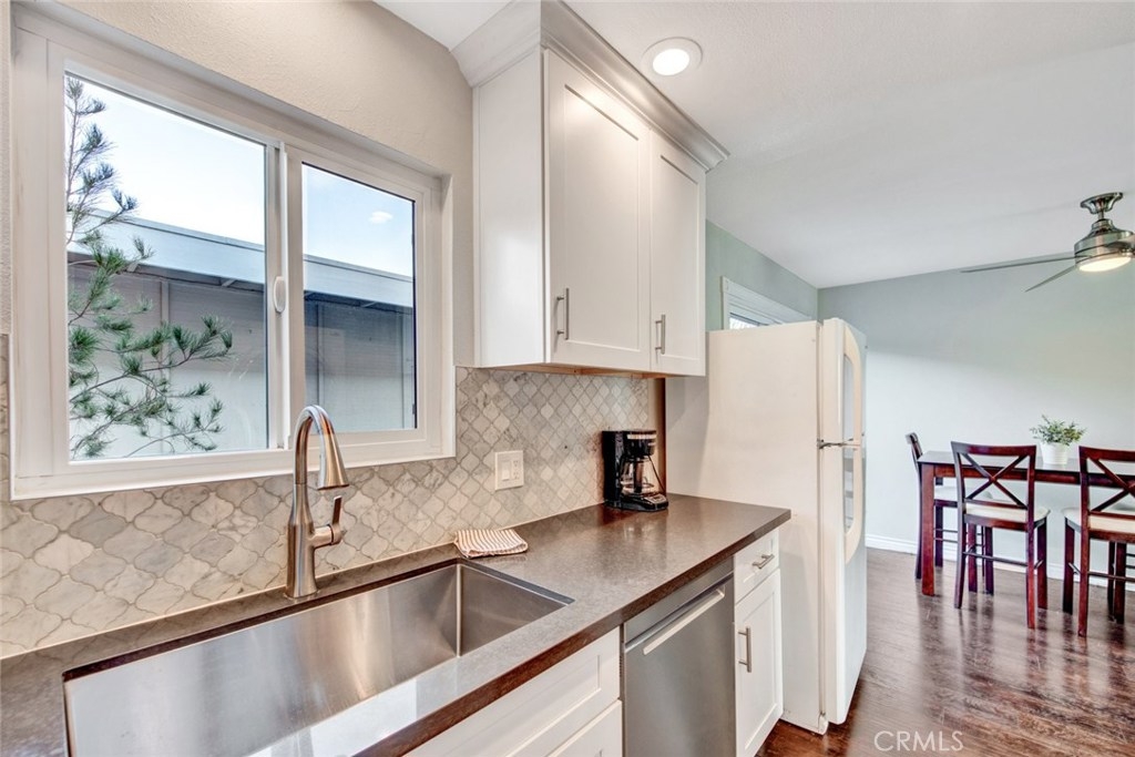 Welcome Home! Completely Remodeled! Move In Ready! Gorgeous flooring, scraped ceilings! 4" baseboards! Freshly Painted! Newer dual pane windows throughout! Absolutely stunning kitchen with white soft close cabinets and drawers! Dramatic marble back splash, newer stainless steel appliances, huge farmers sink and quartz counter tops! The kitchen ceiling soffits have been removed which eliminates a “closed in” feeling. The Living room walls have been removed creating a large open space with plenty of room for furniture and entertaining. Inside Laundry! New Plumbing! Newer furnace! Remodeled bathrooms with soft close cabinets, quartz counter tops, marble tile, high end finishings! Freshly epoxied patio with direct access to carport! Adams is located on a cul-de-sac so there are two sides of the street in front of the home for convenient parking. Property comes with 1 carport and an additional parking space with permit. Enjoy community amenities; pool, remodeled Club House, Basketball Courts, Tennis Courts, Playground, Lucius grounds and much more! Walking distance to shopping, top rated schools, bike to the Pacific Ocean! Close to freeways!