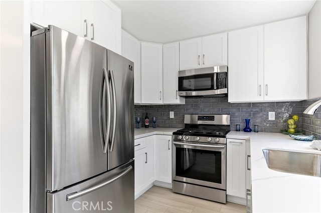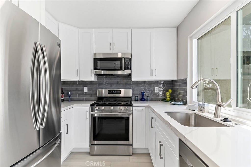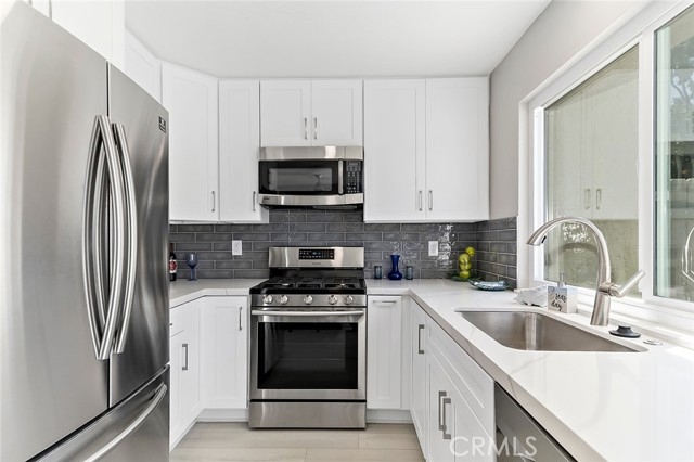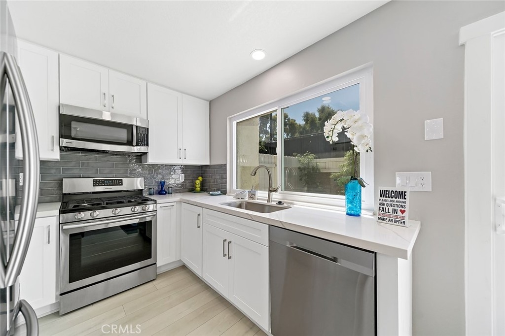 New, New, New - a complete remodel and absolutely gorgeous, this end unit townhome is beach close and in a great surf-city community. Brand new designer kitchen, with quartz countertops, tile backsplash, new cabinets, new microwave, new dishwasher, new sink and stainless fridge and stove. New luxury vinyl flooring through-out that is trendy yet waterproof and durable. Beautiful new bathroom with tile shower, new vanity and panasonic whisper quiet exhaust fan. New LED recessed lighting with color adjustment, new ceiling fan. Freshly painted interior with a designer color that goes with anything so you can move right in. New dual pane windows and new slider. Even the water heater and garage door are new and new trees planted in back for privacy on the patio. There is also a half bath on the first floor and a separate laundry room that will accommodate a full size washer and dryer. The bedrooms have new closet doors as well. The HOA pool is right across the street and there is a great playground for the kids. High rated schools too is a big plus. The HOA reports that it is planning on painting the exterior this year to modernize the entire community. Not only will you love this beautiful home but the location is perfect, just minutes to the beach and easy access to the 405 plus plenty of shops and dining right nearby.