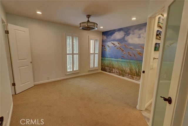 Escape to paradise without leaving home inside this upgraded, 2 bedroom with the 3rd bedroom being converted into an den/office, 1.5 bathroom condo where every wall tells a story! Travel inspired wallpaper from the Amalfi Coast, Central Park, and Bora Bora bring the world's most beautiful destinations right into your home!! Features include new carpet in all upstairs bedrooms and hallway, updated bathroom with large walk in shower, updated kitchen with white cabinets, gray Quartz countertops built in microwave, gas range, dishwasher, refrigerator, and a large stainless steel sink. You will enjoy being located just minutes away from the local beaches of Huntington and Newport Beach, shopping and great restaurants. Your private patio is perfect for morning coffee while you day dream of being in Greece. There is a 2-car detached garage that offers plenty of space for cars, bikes, beach gear, washer/dryer hookups, and direct access to the patio.